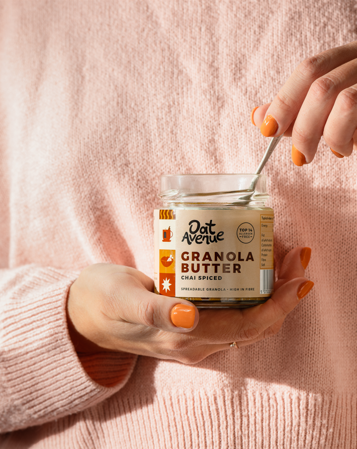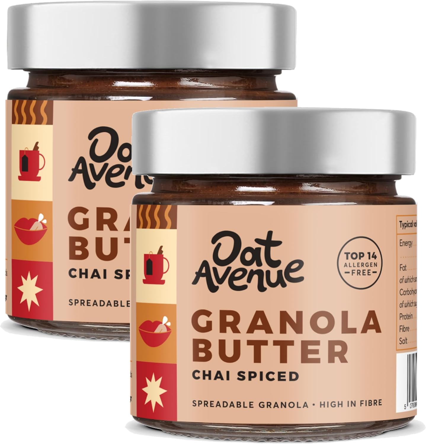 Chai Spiced Granola Butter Ingredients: Gluten Free Oats, Organic Coconut Sugar, Sunflower Oil, Ginger, Cinnamon, Cardamom, Clove, Black Pepper and Sea Salt