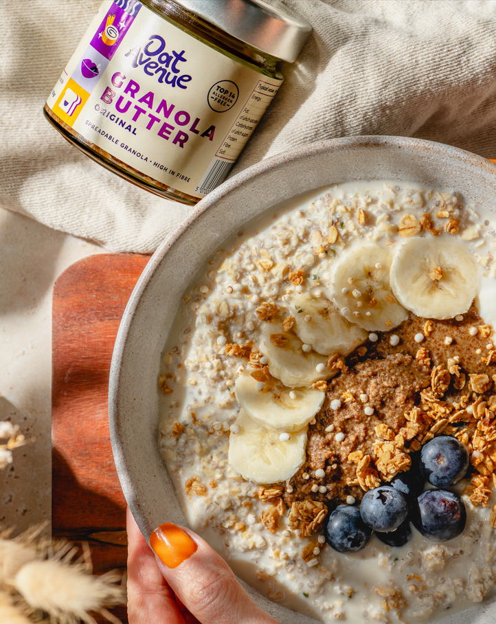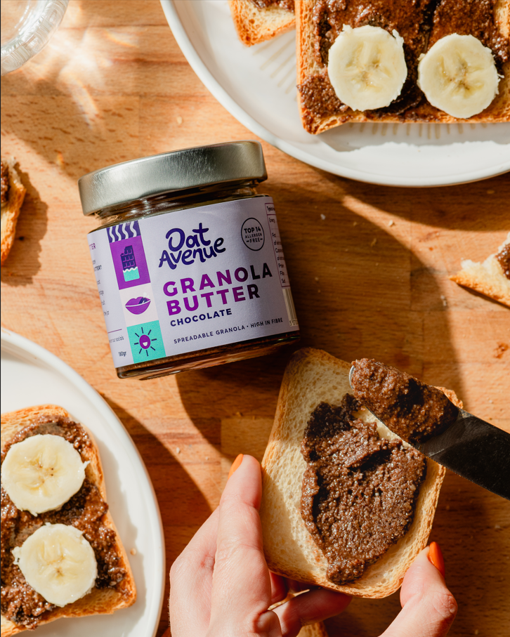 It’s a vegan, gluten and nut free spread. We combine the heartiest gluten free oats, with organic coconut sugar, Natural spices or ingredients and a pinch of salt. We roast it to perfection and then grind it into this jar of deliciousness. Our granola butter is suitable for people with peanut and tree nut allergies, vegans and coeliacs.